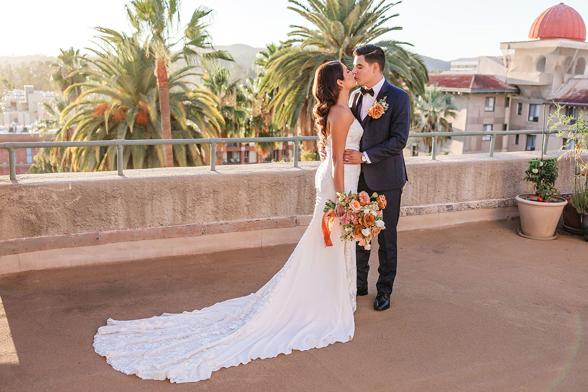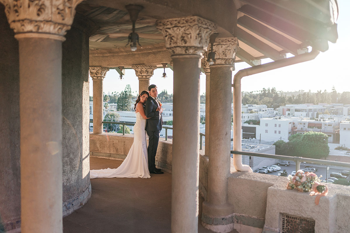 • Photo on the roof of the castle. Brides love this location very much, the photos here are incredibly romantic. Here you will see a round altar with a red roof and many columns. On clear sunny days, the rooftop offers incredible views of Pasadena. But this area is most beautiful at sunset, when warm red sun rays flood the entire space.